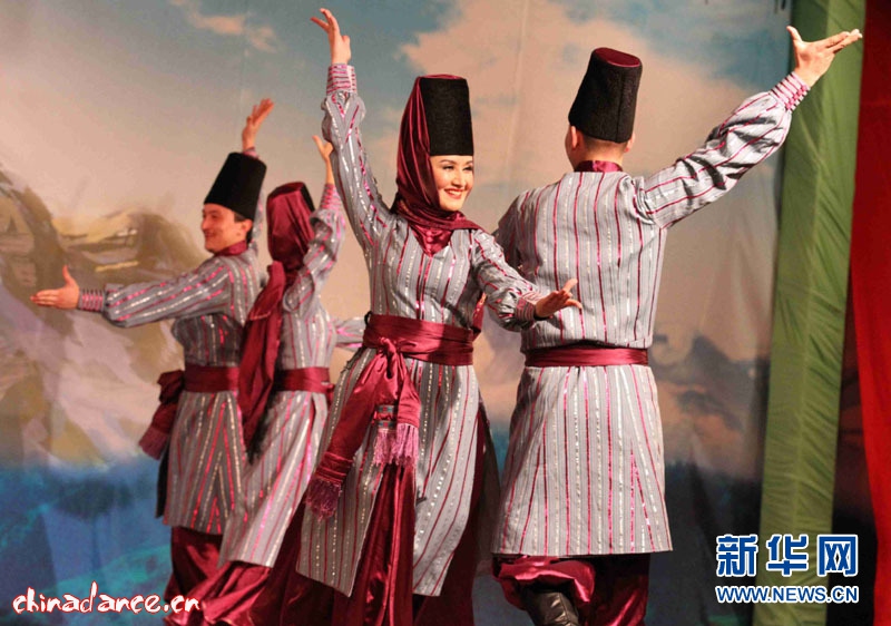 艺术团表演吐鲁番民间集体舞“那孜库姆”(新华网记者 车宏亮 摄)