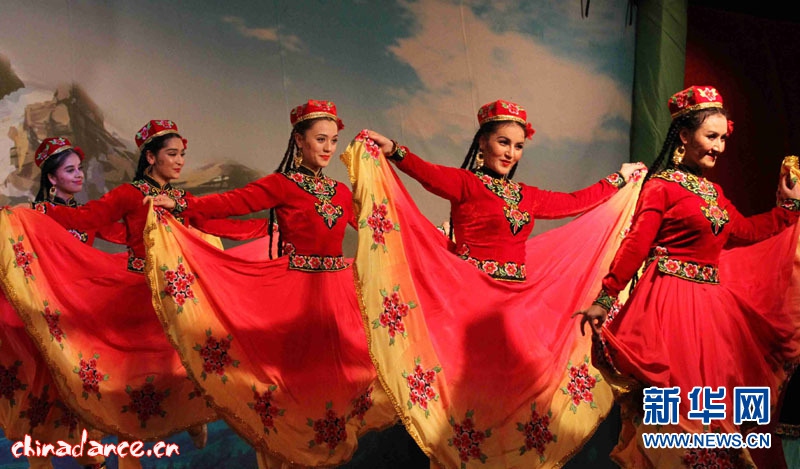 艺术团表演维吾尔族集体舞“刀郎麦西来甫”(新华网记者 车宏亮 摄)